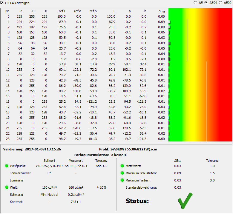 Überprüfungsprotokoll für meinen Spectraview Reference 242