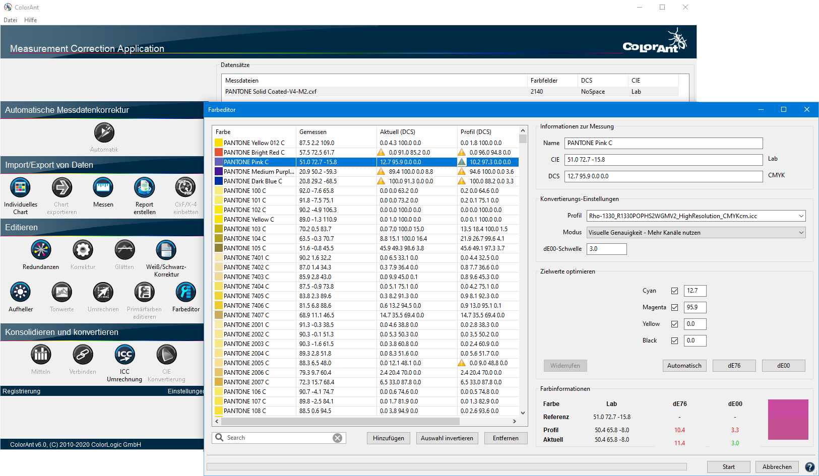 ColorAnt von ColorLogic - das Power-Werkzeug für optimierte Messdaten, verbesserte Profile, individuelle Testcharts und zum Editieren von Primärfarben