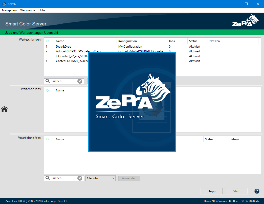 ZePrA ist ein hochleistungsfähiger Colorserver für Mac oder Windows. Das Programm unterstützt DeviceLink- und ICC-Profile und bietet die Konvertierung und Optimierung kompletter PDF-Druckdaten sowie Bilddatenformaten (PSD, PSB, TIFF und JPEG) via Hotfolder.