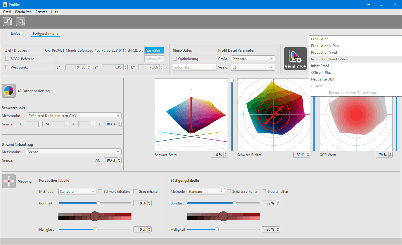 Neuberechnung von Schwarzaufbau und Gamutmapping für Devicelinks