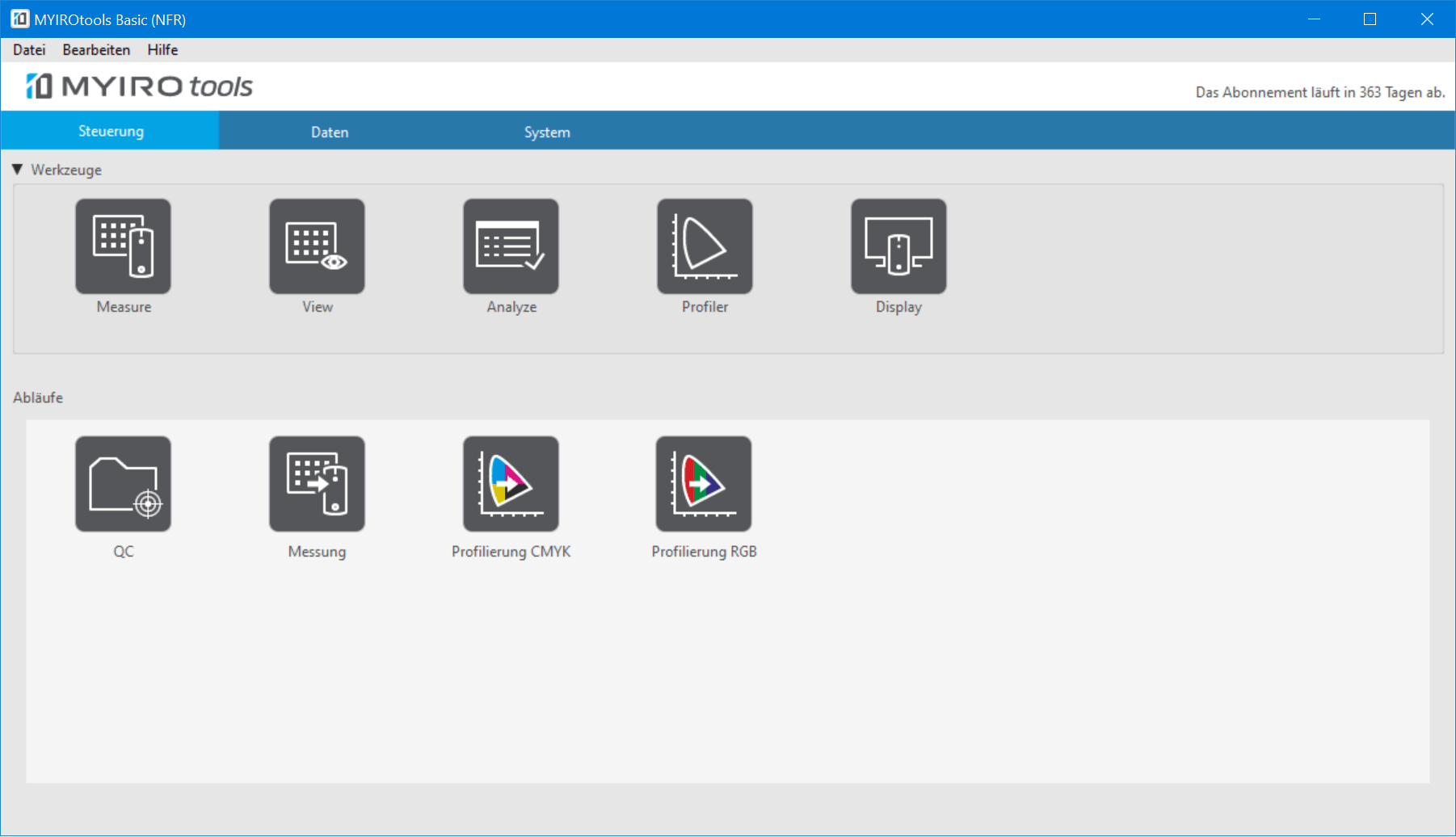 - Monitorkalibrierung - incl. Validierung - es wird basICColor display 6 für Konica Minolta gestartet - Diese Version wird durch ein angeschlossenes MYIRO-1 freigeschaltet, funktioniert also auch mit einer unlizensierten Installation der MYIROtools. D.h. mit Ihrem MYIRO-1 können Sie die Monitore von beliebig vielen Arbeitsplätze kalibrieren.